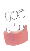 ブリッジでは、両隣の歯を削り、両隣の歯となくした歯の義歯を上からかぶせます。